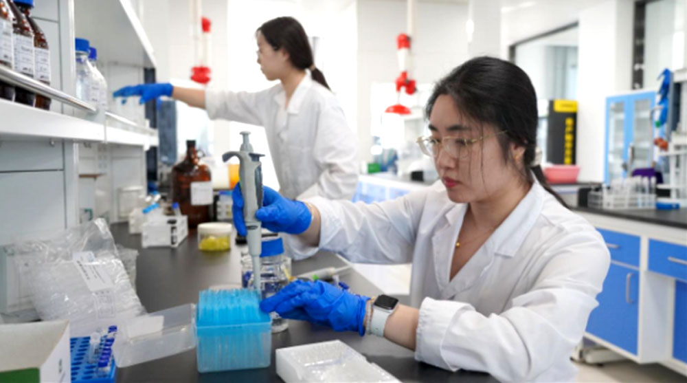 8月31日,檢驗員正在位于邯鄲經(jīng)濟技術(shù)開(kāi)發(fā)區的晨光生物實(shí)驗室做產(chǎn)品農藥殘留檢測試驗(晨光生物供圖)