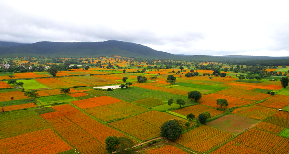 2016年,晨光生物在印度建起第二家工廠(chǎng),圖為為工廠(chǎng)提供原料的卡納塔克邦萬(wàn)壽菊種植基地(晨光生物供圖)