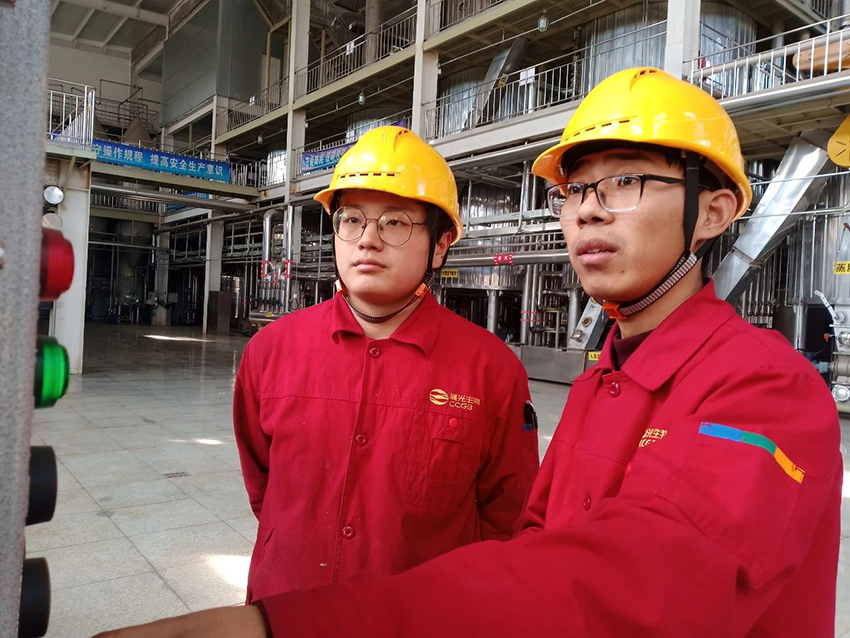 晨光生物營(yíng)養藥用綜合提取車(chē)間員工在操作設備 李衛國攝