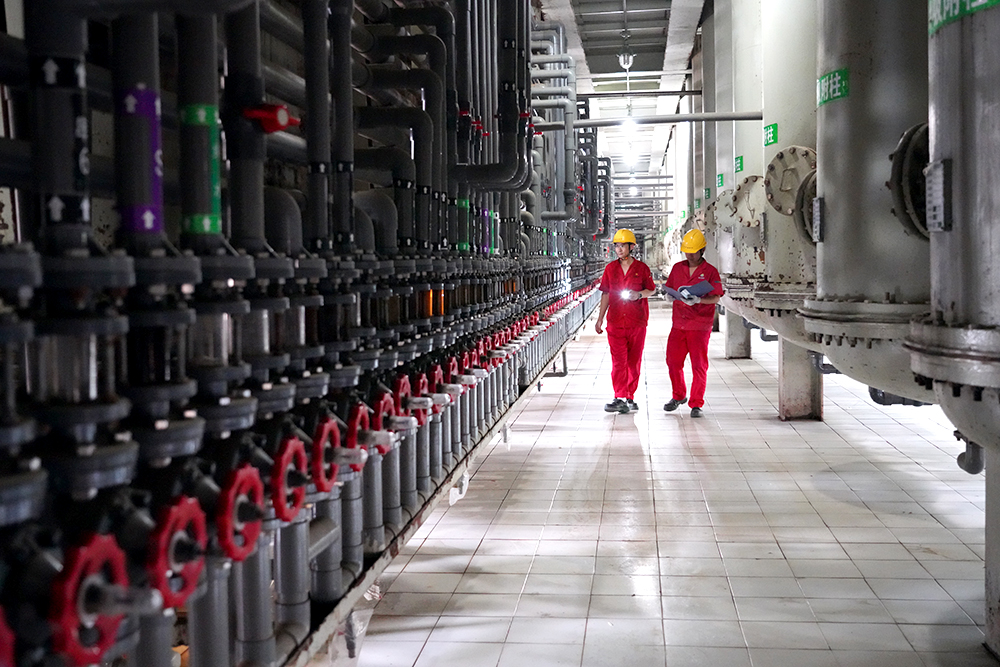 晨光生物甜菊糖精制車(chē)間員工在巡崗。